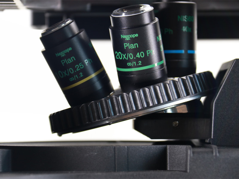 聚光镜处配置4×相衬(可选),10×、20×、40×通用相衬滑板 |